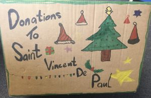 Items can be dropped in the box outside Ms. O`Brien’s Office from the 9th of December until the 18th of December.